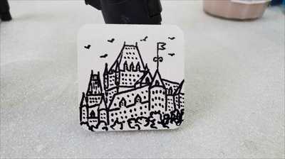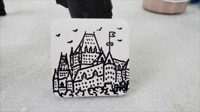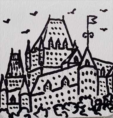 A square magnet drawn with a Chateau Frontenac 12 marker
