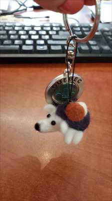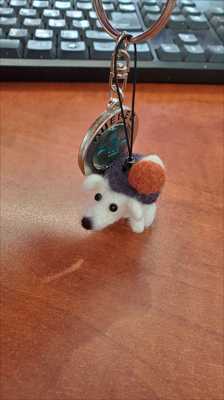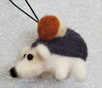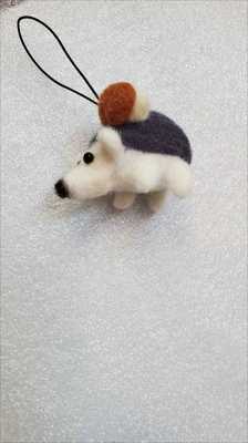 A keychain with a miniature hedgehog made of felted wool.
