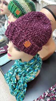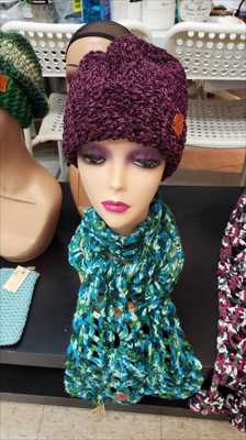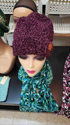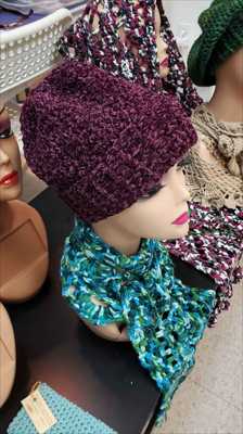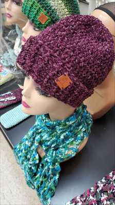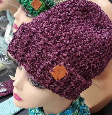 A dark burgundy hat with a plush texture. Hand-crocheted. Completely handmade.