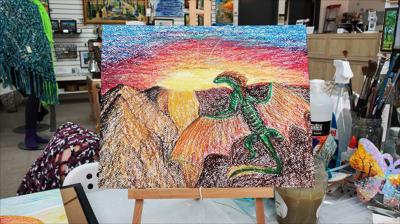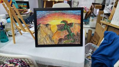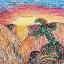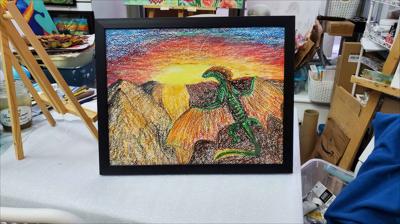 Dragon meets the sun. Oil pastel on paper.