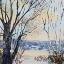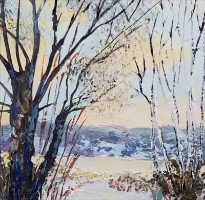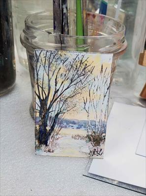 In frosty silence, as if in a crystal fairy tale, a miniature painting is painted with oil paints on cardboard and framed in a magnetic frame.
